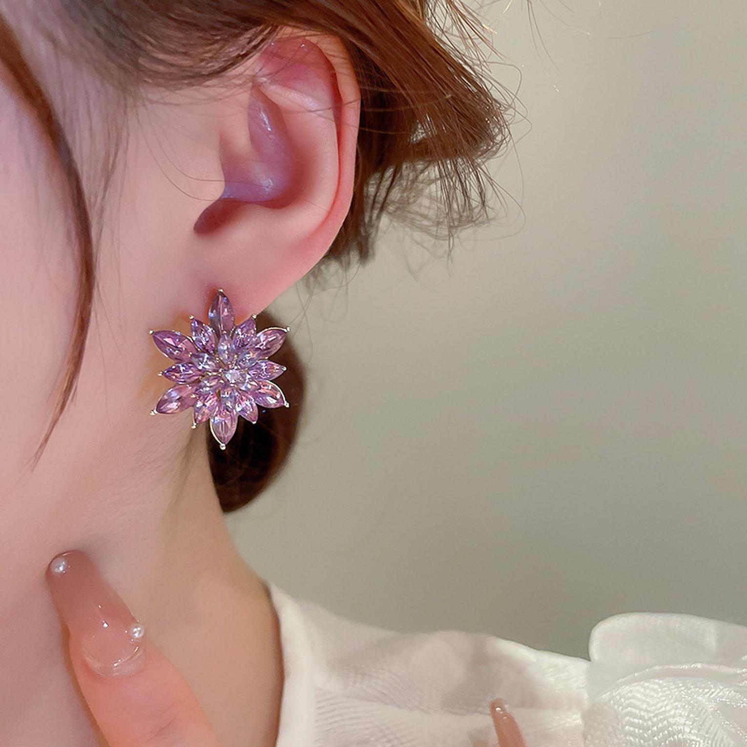 Vibrant purple crystal stud earrings that add a pop of color with refined sparkle.