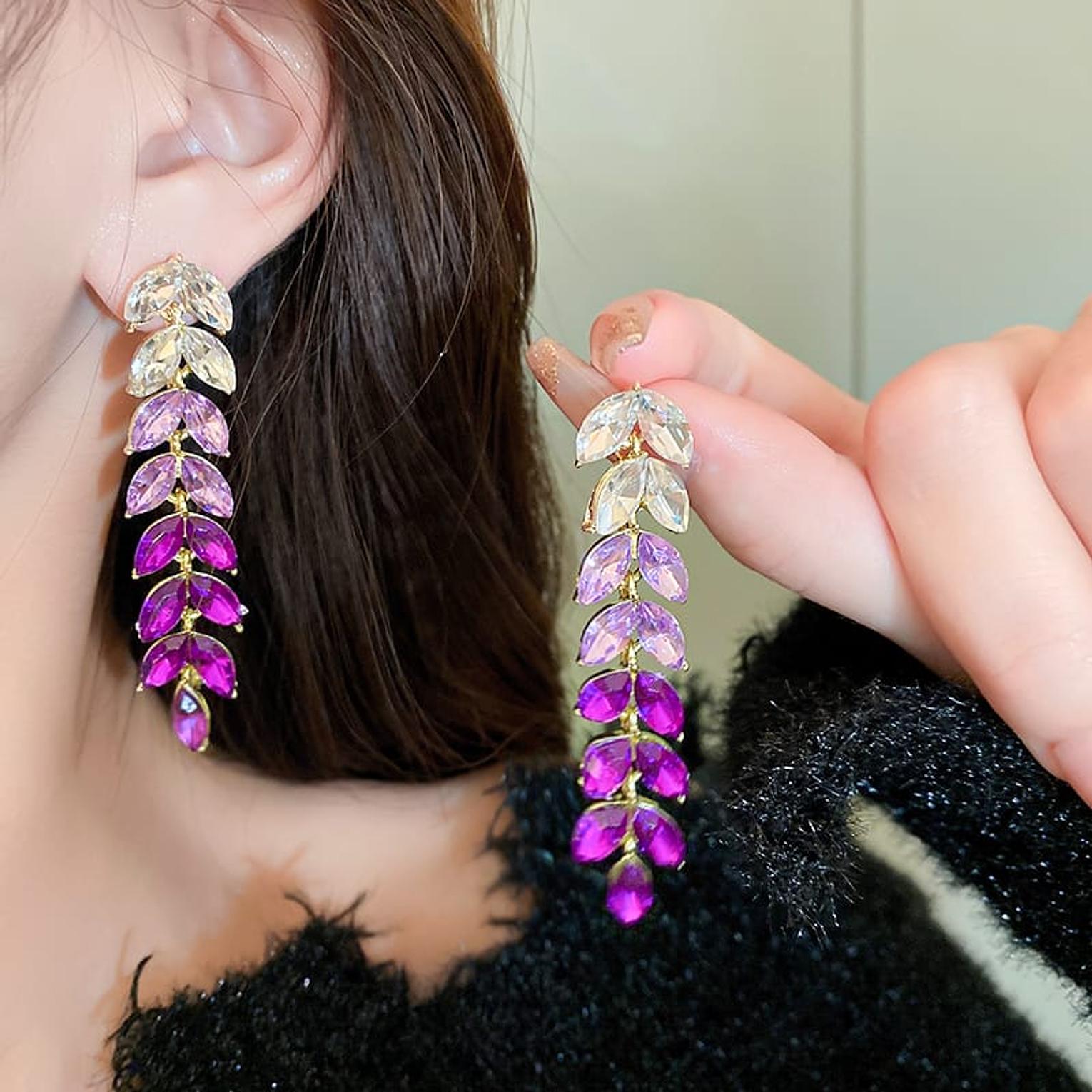 Graceful purple leaf crystal earrings that add a refined touch of color and sparkle to any outfit.